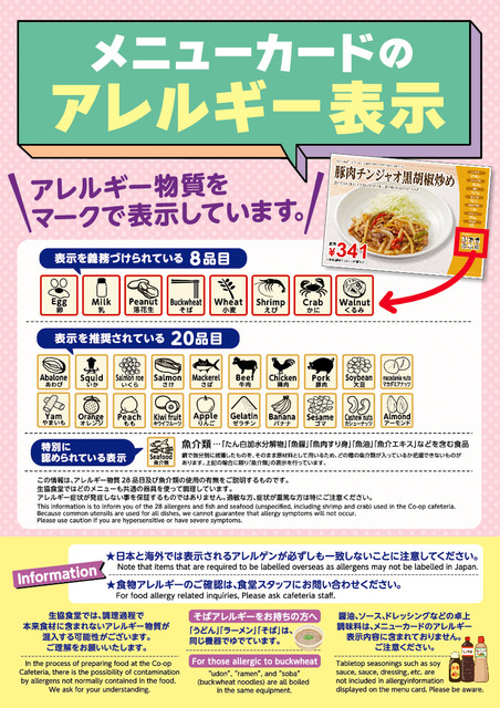 メニューカードのアレルギー表示
