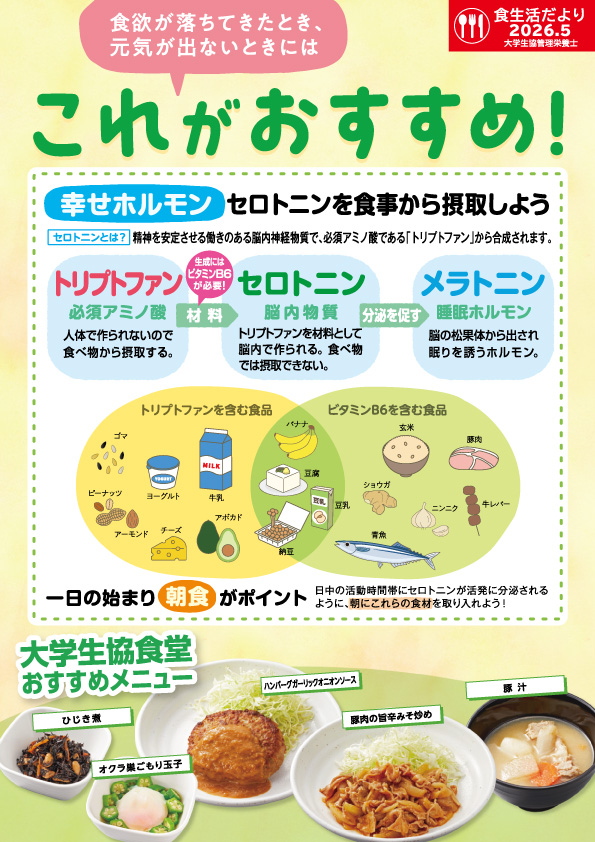 食生活だより 食欲が落ちてきたとき、元気が出ないときにはこれがおすすめ!