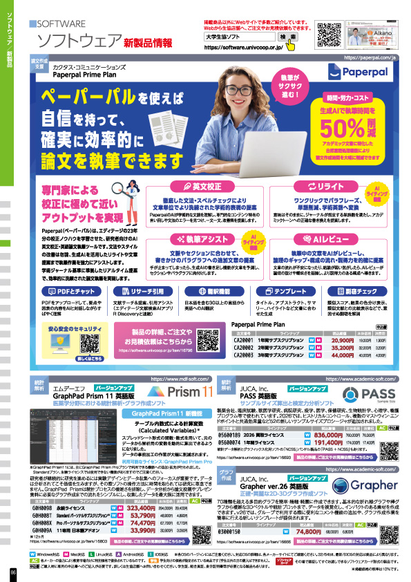 使用条件、購入条件など詳しくは大学生協ソフトウェアインフォメーションの商品ページ内をご参考ください。