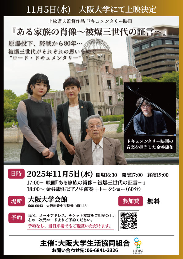 2025.10.06 【当日来場でもOK!】参加無料! ~ある家族の肖像 被爆三世代の証言~ ドキュメンタリー上映会
