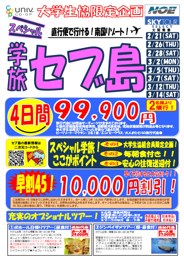 語学留学については「阪大生協内サイト」でも詳しくご紹介しています。海外航空券について