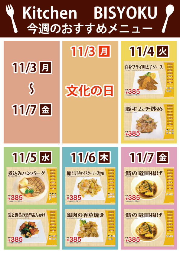 11/3~11/8 しっかりたべて今日の元気をチャージしよう!