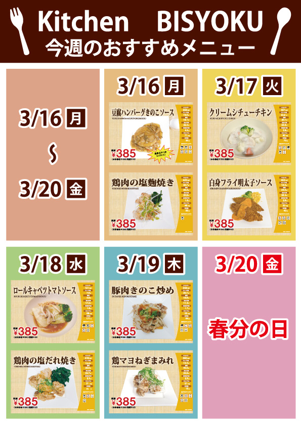 3月おすすめ日替わりメニュー