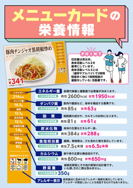 メニューカードの栄養情報