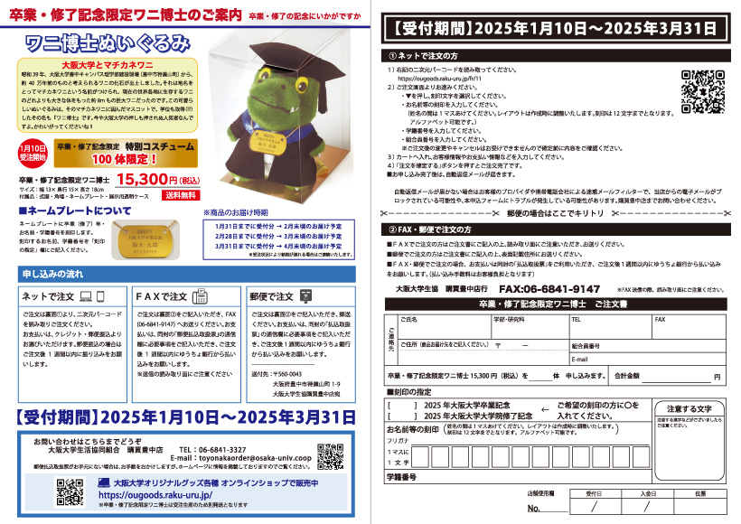 複数回にわけてお申し込みの場合や同封されていない場合は、お手数をおかけしますが、郵便局備え付けの払込取扱票(青色)に例のようにご記入いただき、お振込みをお願いいたします。なお、払込時の手数料はお客様ご負担となりますので予めご了承ください。