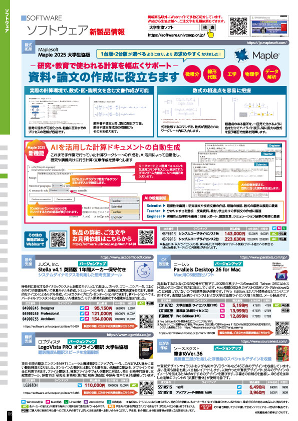 ソフトウェアインフォメーション- 大学生協で取り扱う様々なソフトウェアやライセンス製品のサイトです。
