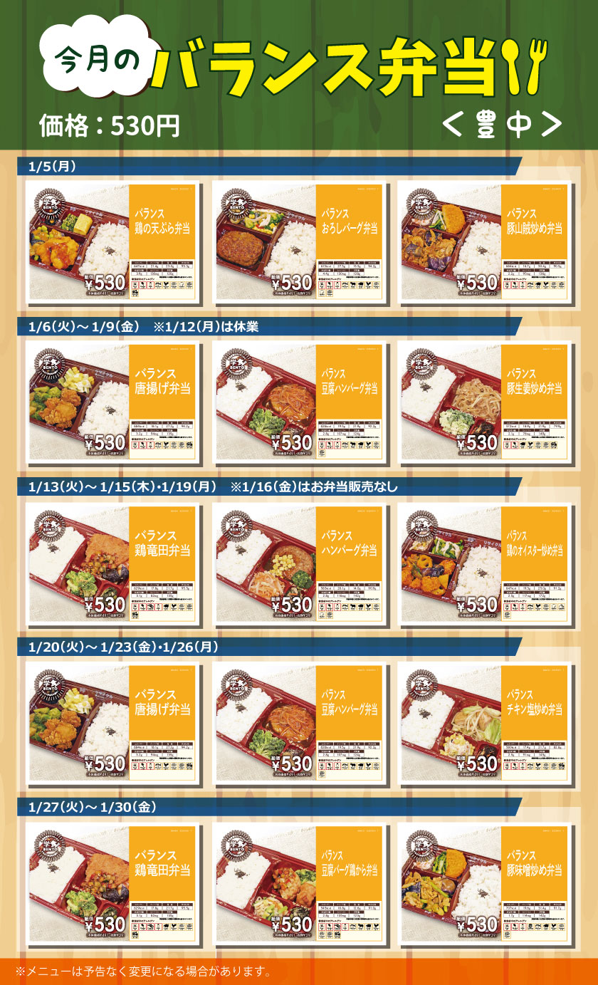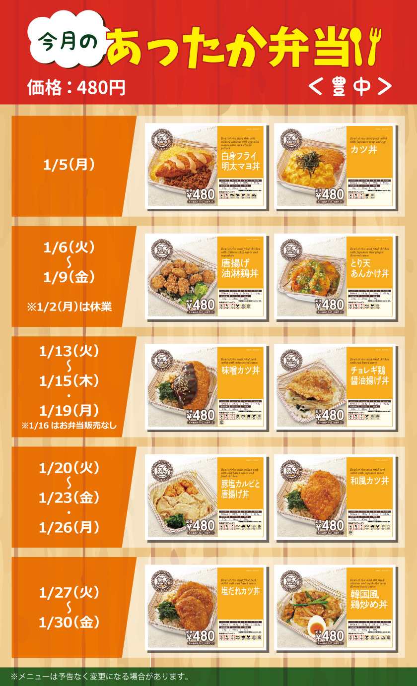 【豊中地区】あったか弁当カレンダー