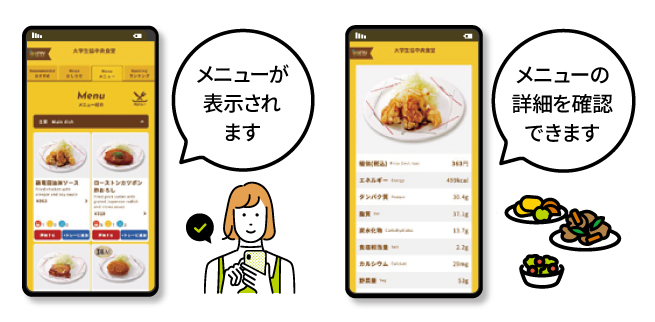 毎日の食事の確認ができて安心 アプリで本人も保護者も利用履歴を見ることができます。ちゃんと食事をとっているか確認できる「安心のシステム」です。 |