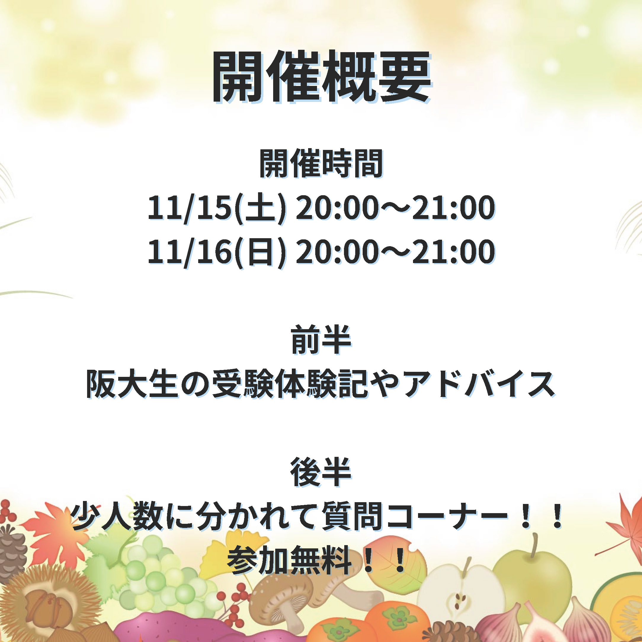 11/15(土)、11/16(日)に阪大GI主催の受験生ラジオ相談会を開催します!